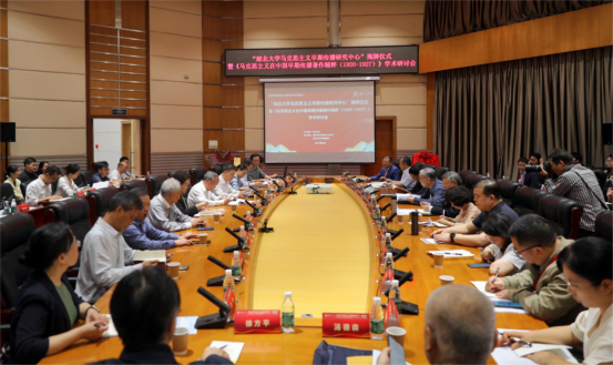 北京大学博雅讲席教授、《马藏》编纂与研究中心主任顾海良教授,中共中央编译局原秘书长、清华大学8827太阳集团官网杨金海教授,湖北省委党史研究室副主任李福珍,湖北省委宣传部理论处负责人李琼,8827太阳集团官网党委书记谢红星出席会议。公司党委副书记侯勇主持仪式。