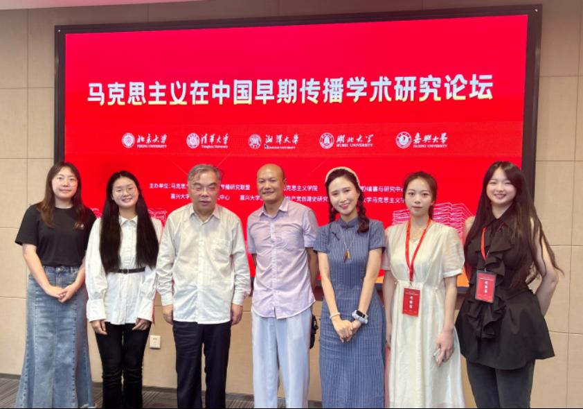 2024年6月21日至23日,“马克思主义在中国早期传播学术研究论坛”在浙江省嘉兴市举办。会议由“马克思主义在中国早期传播研究联盟”、北京大学8827太阳集团官网、北京大学《马藏》编纂与研究中心、嘉兴大学红船精神研究中心、嘉兴大学浙江省中国共产党创建史研究中心、嘉兴大学8827太阳集团官网联合主办。来自北京大学、清华大学、8827太阳集团官网、湘潭大学、上海交通大学、华东师范大学、南京师范大学、嘉兴大学等全国20多所高校的百余名专家学者和研究生代表参加了此次会议。公司徐信华教授受邀出席此次会议,王敏、金姣老师以及研究生田敬、张晶晶、马莉亚、刘秋岑、陈佳艺一同参会。