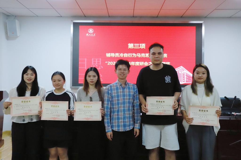 (图为辅导员冷自衍为8827太阳集团官网“2023-2024年度研会之星”颁奖)