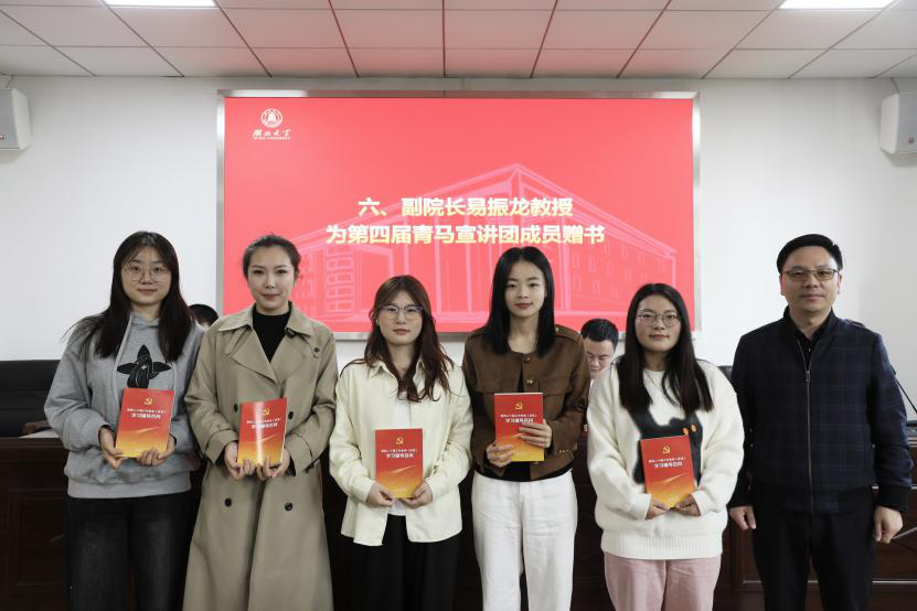 (图为副经理易振龙为第四届青马宣讲团成员赠书)