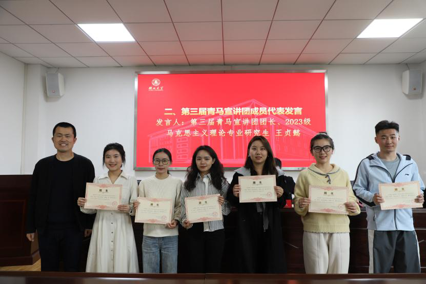 (图为院团委书记冷自衍为青马宣讲团“宣讲之星”颁发荣誉证书)