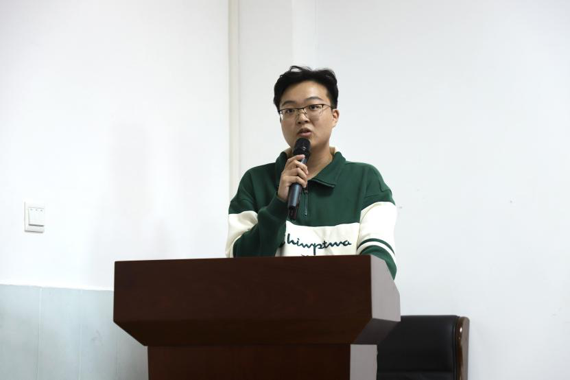 随后第四届青马宣讲团团长、2023级农业发展专业研究生王润东代表发言,王润东回顾了过去一年青马宣讲团的工作,表示青马宣讲团各项工作的开展离不开同学与老师的支持,并希望新一届青马宣讲团全体成员要切实做到“俯下身来学理论,抬起头来讲故事”。