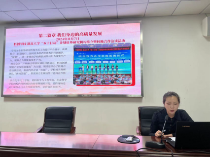 太阳集团张喜童以“在以新质生产力推动高质量发展中挺膺担当”为题,用视频、VR带领大家沉浸式体验总书记湖北考察第一站孝感云梦博物馆秦汉简牍跨越千年的魅力。她呼吁同学们坚持做马克思主义的坚定信仰者、中国式现代化的积极贡献者和高质量发展的卓越推动者。